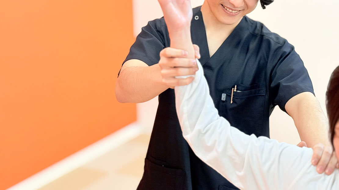 肘を引っ張っている原因となる前腕の筋肉を徹底的に緩めます。同時に、肩甲骨周りの筋肉を調整し、肘への負担を肩や背中へと逃がせる状態を整えます。