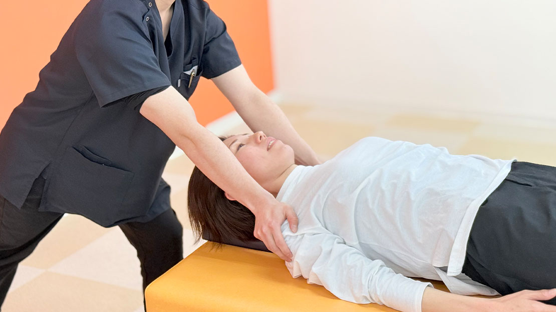 専用の矯正ベッドや手技を用い、固まってしまった頸椎の関節1つ1つに動きを与え、正常なカーブ(しなり)を取り戻します。バキバキしない安全な施術ですので、お子様や女性の方も安心して受けられます。